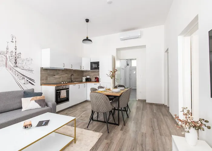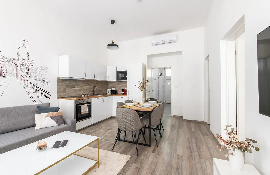 Los huéspedes pueden hacer uso de las instalaciones de autoservicio de la propiedad, incluida una cocina bien equipada, y disfrutar de sus comidas en una zona de comedor. El establecimiento está situado a 5 minutos a pie de la estación de metro Bajcsy-Zsilinszky út.